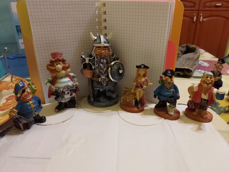 Веселые пиратики, разбойники и викинги. Статуэтки фигурки пиратиков. Большие фигурки стоят по 289 гривен за одну статуэтку. Менее статуэтки стоят по 239 гривен за одну фигурку. Самая большая фигурка стоит 300 гривен - фигурка сильного викинга.
