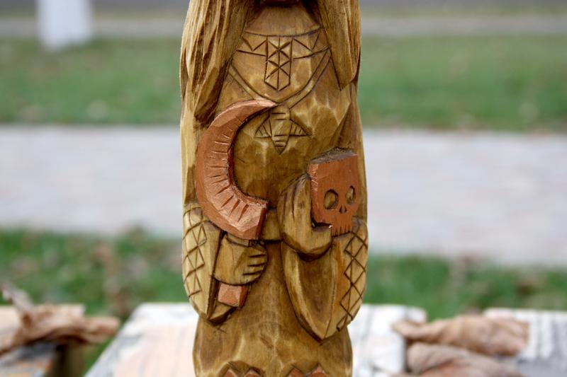 Мара - самая настоящая богиня зла и темноты. Иногда можно встретить ее под именем Марена. Богиня способна управлять абсолютно всем злом и темнотой в душах людей. В нее есть тринадцать полноценных гипоти-вороботов, помогающих матери наладить смуху и темноту по всей земле. Характеристика: Высота: 25 см Ширина: 6.5 см Глубина 6.5 см Материал: дерево, дуб Обработка: резьба по дереву, шлифовка Покрытие: моревание, маслом и воском Цвет - коричневый Смотрите также другие изделия