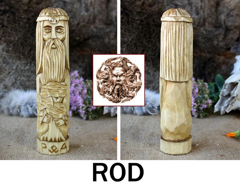 Род Первобог — главное славянское Божество, Создатель всего, первичный дух, Первобог, Прабог. Славяне верили, что Род родился из золотого яйца, а потом создал три мира: Правь (небесный), Явь (земной) и Навь (загробный) и первый круг славянского пантеона (Сварог, Семаргл, Хорс и Велес). Характеристика: Высота: 17 см Ширина: 3 см Глубина 3 см Материал: дерево, липа Обработка: резьба по дереву, шлифовка Покрытие: моревание, маслом и воском Цвет светокоричневый Смотрите также другие изделия