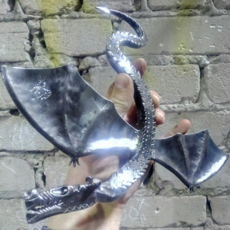 Товары изготовленные способом ковки металла, являются оригинальными и не бывают идентичны. Сувенир Дракоша в полете. Размер 200*200*20 мм. Материал - металл. Цвет: Черный/Серебро. Производство: Украина.