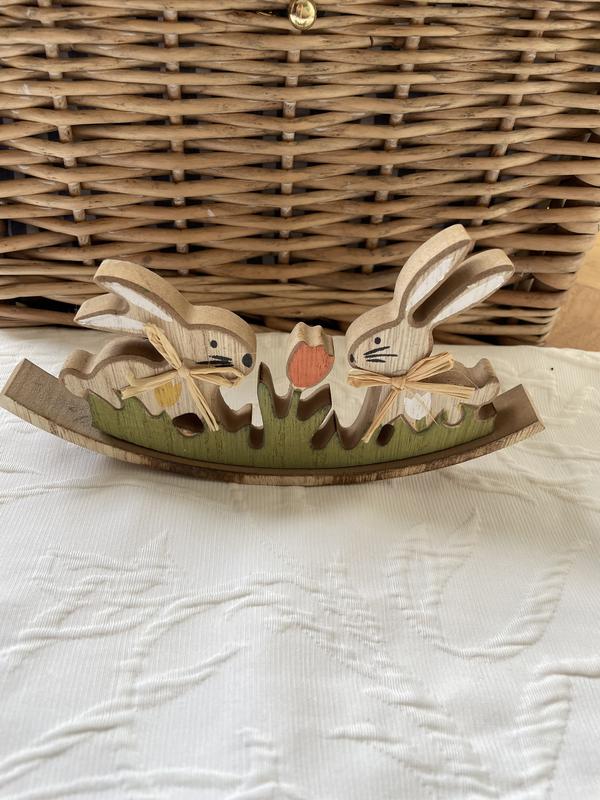 Деревянная статуэтка 2 зайцы
