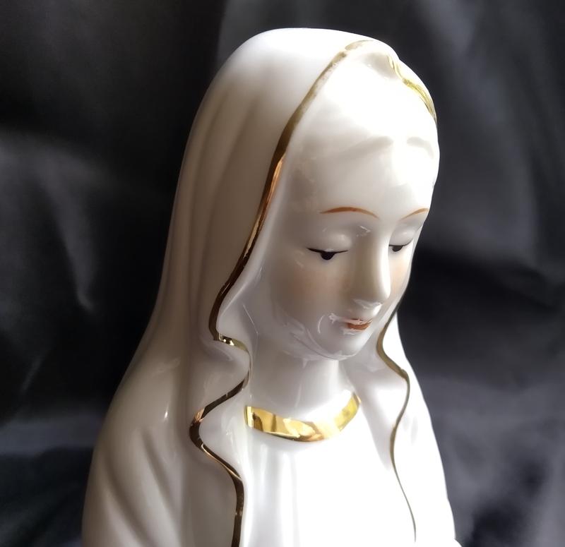 Статуэтка Дева молитва, фарфор в позолоте. Размеры высота 12см ширина 8см. Состояние по фото очень хорошее, повреждений не заметил.