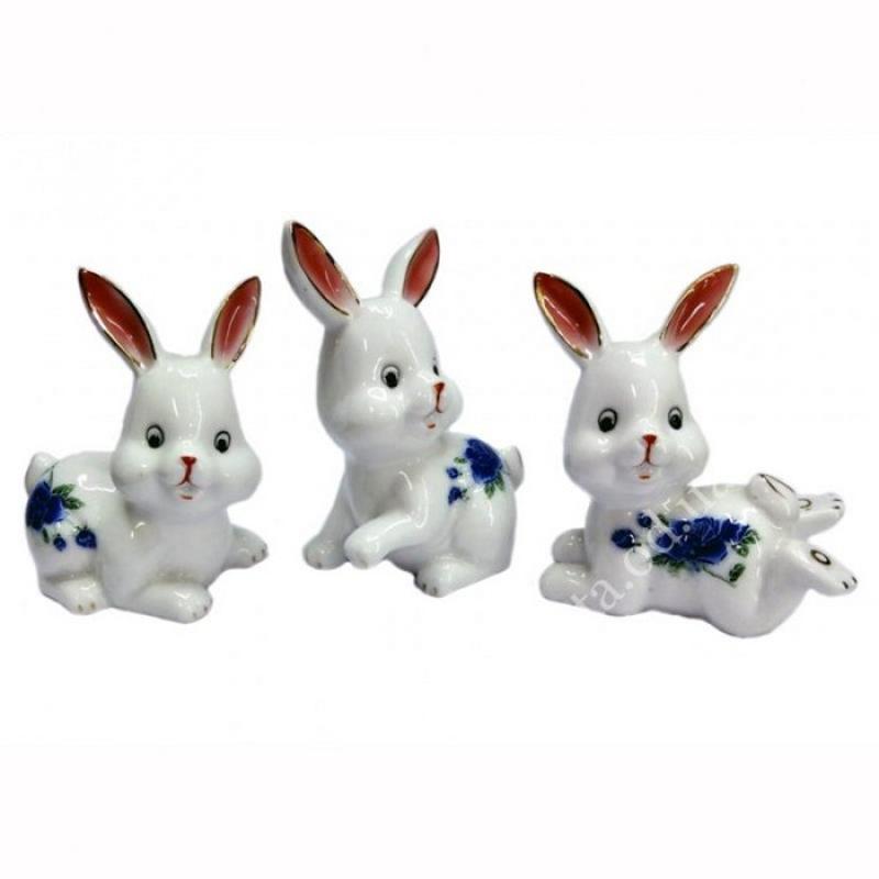 Зайцы 3 шт в комплекте фаянс, статуетка фаянс заец