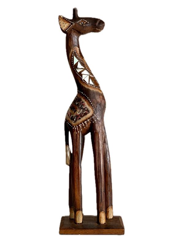 Статуэтка жирафа ,декорирован росписью,высота 40см.Материал:дерево бальса. Размер:высота 40см.Декор :роспись,накладной зеркальный декор. Страна производитель:Индонезия,ручная работа. Жираф-символизирует такие моменты,как,удача,благополучие,счастье и богатство.А так же желание и способность дотянуться до чего-то далекого и недосягаемого.Помогает стать яркой личностью и быть "на голову выше всех".