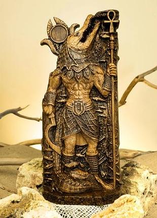 Для заказов пишите в личные сообщения Себек (или Собек) - египетский бог с головой крокодила, связанный с водами, плодородием и защитой. Его почитали как могущественного и опасного бога, а также как защитника, оберегающего людей от врагов и зла. Собек ассоциировался с Нилом и крокодилами, жившими в его водах. В египетской мифологии он был связан с силой царской власти и защитой фараонов. Считалось, что его мощь может помочь не только в защите государства, но и в обеспечении плодородия полей, которые орошались водами Нила. Центр культа Себека находился в Фаюмском оазисе, где были храмы, посвященные этому божеству. Делаю фигурки под заказ по Вашим пожеланиям. Характеристика: Высота: 23 см Ширина: 9 см Глубина: 4 см Материал: дуб, дерево Обработка: резьба по дереву, шлифовка Покрытие: морение, маслом и воском Цвет: Коричневый Смотрите также другие изделия Египетские боги в наличии: 1.Анубис 2.Бастет 3.Осирис 4.Сет 5.Исида 6.Ра 7.Сахмет 8.Себек 9.Тот 10.Хатхор 11.Египетский крест Анх