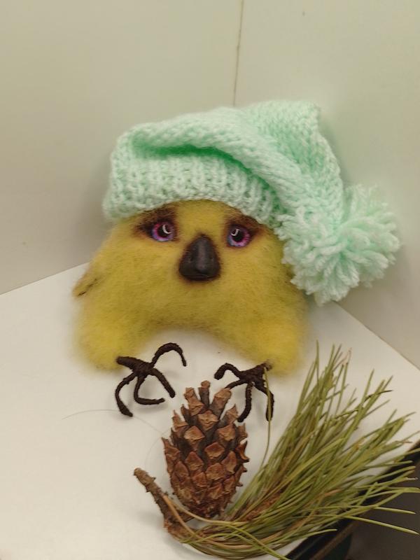 Пташка зваляна із натуральної вовни. Лапки на каркасі гнуться.
