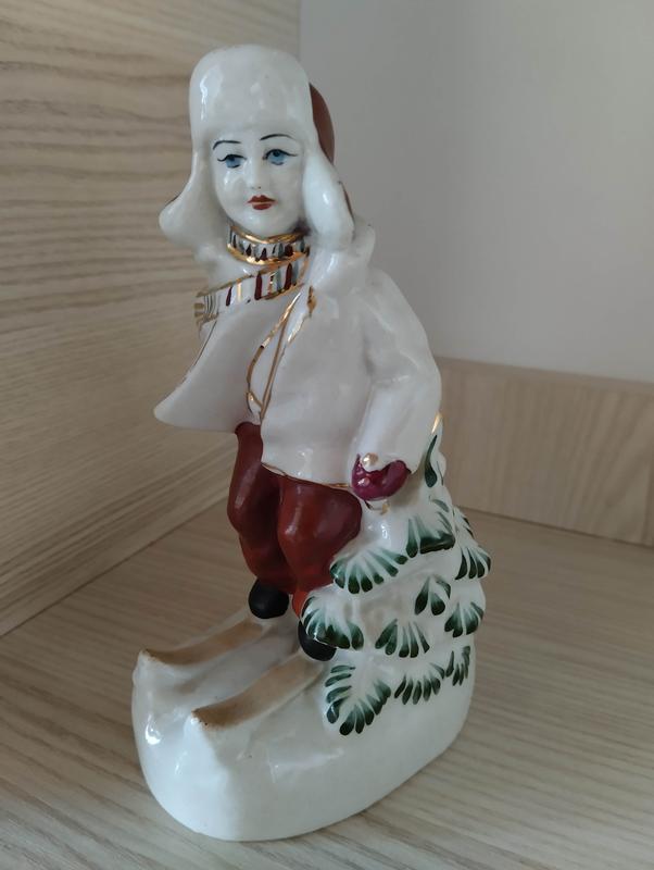 Фарфоровая статуэтка "Мальчик на лыжах"периода СССР ,есть незначительные потертости краски на шапке ,на фото показал