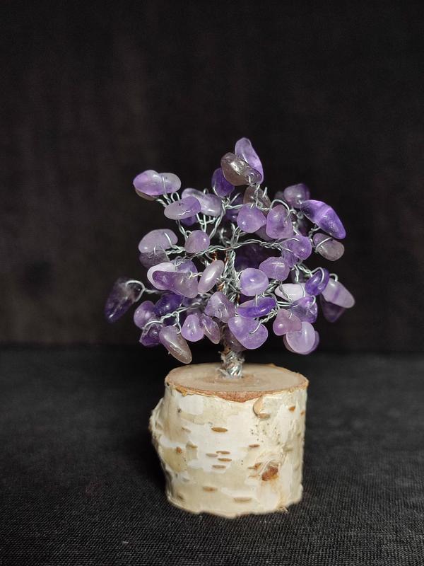 Кришталеве дерево. Дерево изготовлено из натурального аметиста. Это аккуратное деревце украсит любой интерьер. Оно очень милое. Изящные камни и прочная проволока делают этот дизайн дерева хорошим подарком для ваших дорогих людей. Висота дерева 5,5 см. При покупке вы получаете именно то дерево, которое изображено на фото. Мы не обрабатываем фото, чтобы вы могли видеть настоящее дерево. Перед отправкой мы надежно упаковываем все изделия. Но при пересылке ветки могут несколько изменить свою форму. После пребывания ветки нужно согнуть, чтобы придать дереву желаемую форму. Все ваши изделия изготавливаются вручную по своему оригинальному дизайну. Каждое изделие уникально. Я создаю разный декор высокого качества, чтобы каждый мог найти то, что ему нужно. Если у вас возникли вопросы, пожалуйста, обратитесь. Благодарение, которое проходил наш магазин, желаете мира, здоровья и процветания.