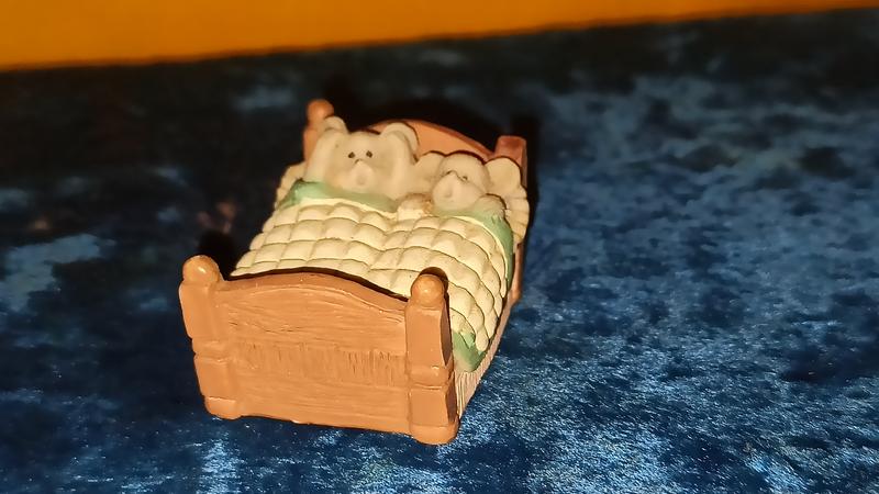 Милая фигурка мышата в кроватке под рестоврацию У кровати сломана одна стойка высота ,2,5 см, длина 4 см, ширина 3,5 см