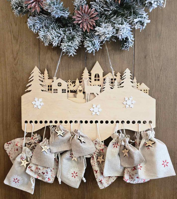 Пропонуємо вам унікальний дерев′яний адвент-календар, який стане справжньою окрасою Вашого дому в очікувунні Різдва. До комплекту входить: Деревяна 3-D основа 40х25см., мішечки лляні (7х9см-10шт. 10х14см-15шт) Можливе гравіювання - ім′я чи побажання.