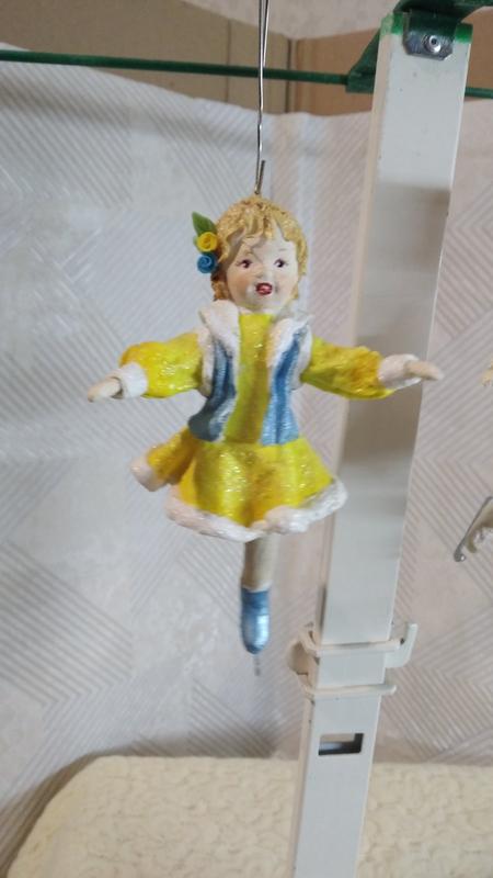 Высота 13 см.Ручная работа.Материал-вата,глина,акриловые краски,лак.Украсит вашу елочку,подарит хорошее настроение)))Великолепный подарок к Рождеству,Новому Году)))