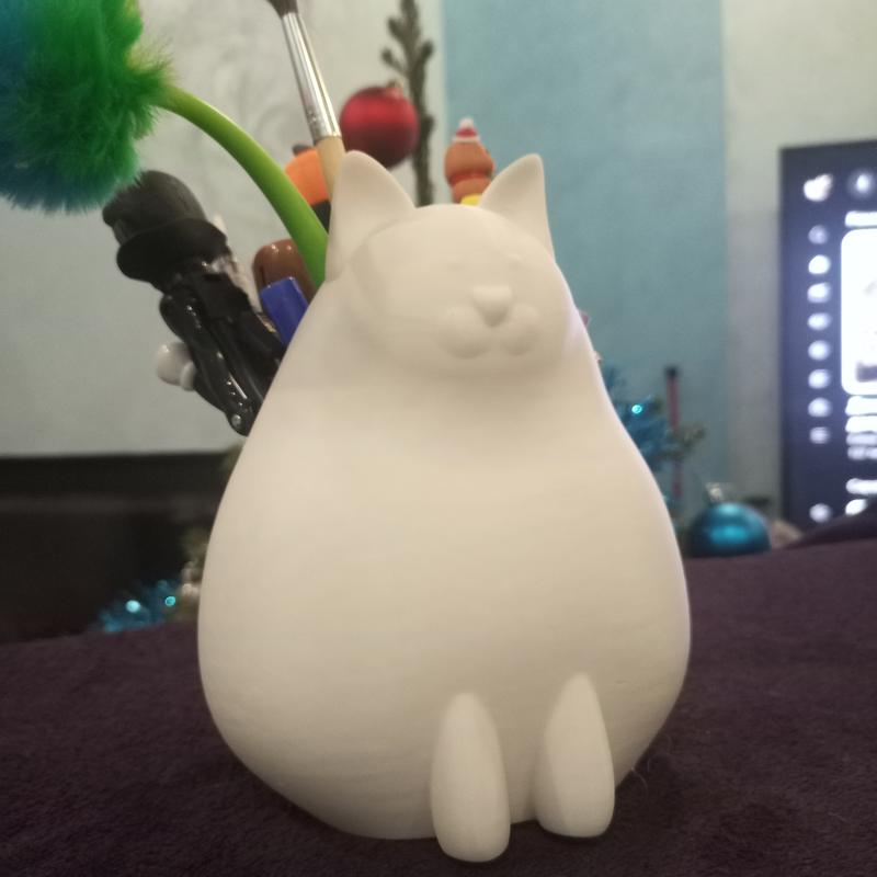 Вместительная и забавная подставка под канцелярию, возможно для чего-то другого. Белый котик, 3Д печать. Возможно выбрать другой цвет.