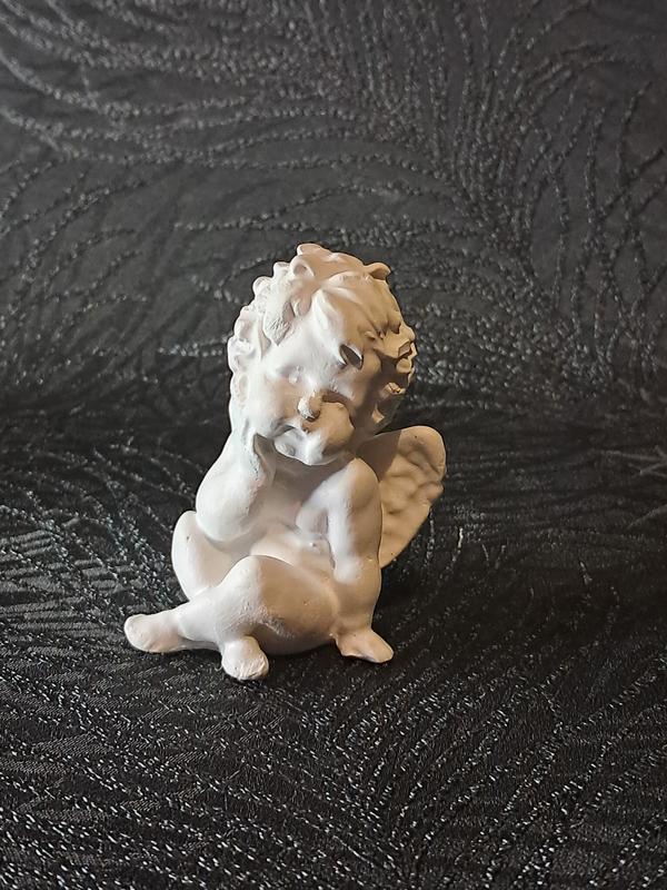 Статуэтка "Ангелочек" ручной работы из гипса. Покрытие акриловая краска. Высота 6 см. В наличии 2 штуки, но по заказу могу выполнить любое количество. Есть еще ангелочек в ракушке, ширина 6 см. длина 8 см. высота 4 см.