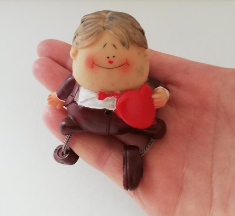 Очень милая статуэтка, декор! Влюбленный молодой человек, ножки свисают на шнурочках.