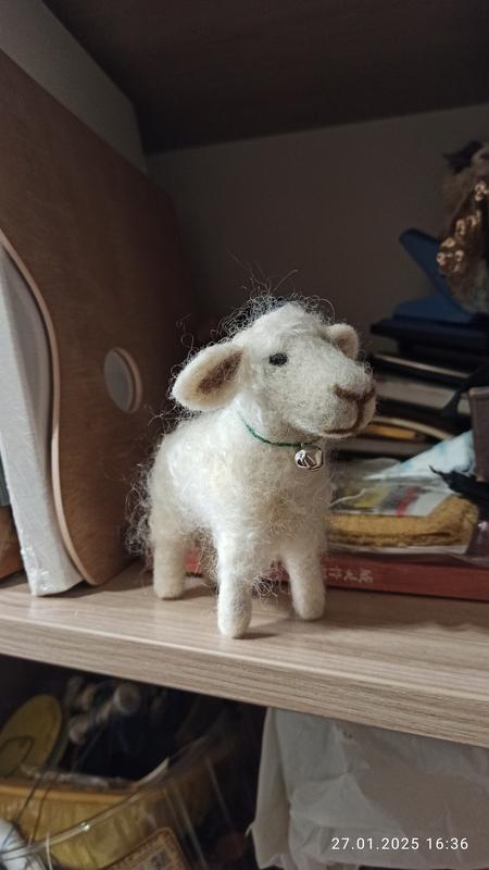 интерьерная игрушка выполнена в технике сухого валивания из шерсти и овечьего флиса.Высота игрушки-11см