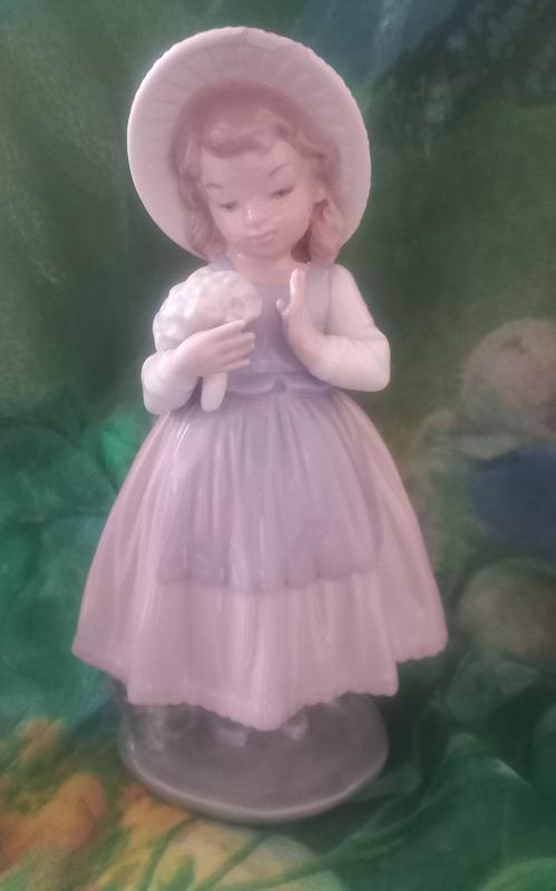фарфоровая статуэтка " Девочка с букетом " . Производство фирмы Nao Lladro . Испания. Высота 20 см. есть скол на шляпке
