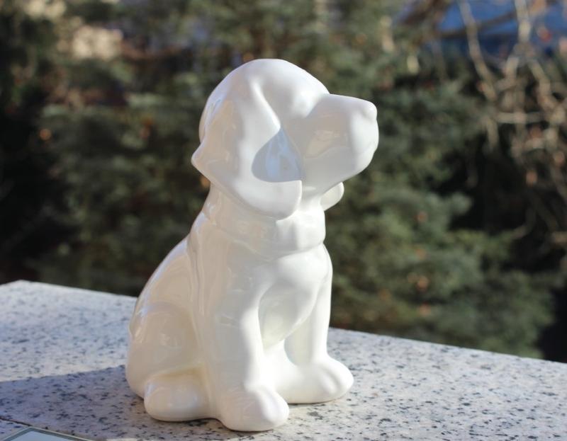 Статуэтка в виде собачки, выполненная из фарфора. Размеры: высота - 16 см., шарина - 10 см., дно - 11х9 см Вес: 270 грамм