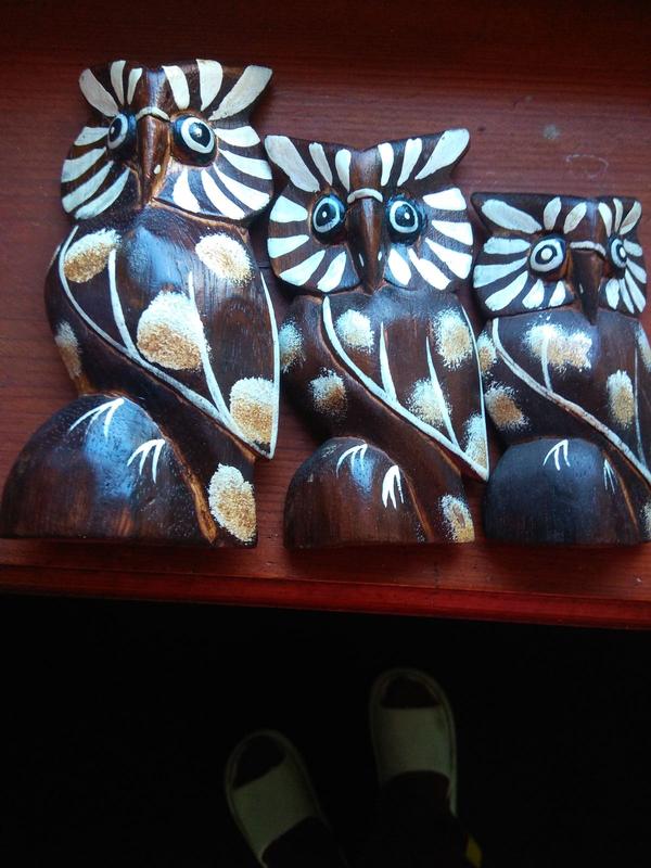 Фигура совы символизирует мудрость и способность постигать знания. Сова - символ мудрости и познания, проницательности, чуткости и пророческого дара. Талисманы в виде совы помогают развивать интеллектуальные способности, анализировать ситуацию и принимать правильные решения. Статуэтки сов принято дарить людям, которые хотят достичь высот в науке, преувеличения бизнеса. Сова помогает добиться успеха и процветания в бизнесе, поэтому статуэтки с ее изображением часто ставят в рабочем кабинете. Такой сувенир можно подарить коллегам по работе или деловым партнерам. Тандем из трех сов поможет сберечь дом от нехороших сил и укрепит семейные отношения. Семья сов "Малах" состоит из трех статуэток высотой 15, 12 и 10 см. Каждое изделие выполнено и расписано вручную, что несет в себе особую ценность. Материал - дерево бальса, роспись ручная работа. Цвет коричневые. Страна производитель - Индонезия. Набор из 3-х штук.