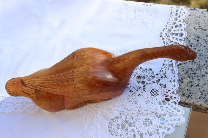 Винтажная деревянная утка, вырезанная вручную из цельного куска дерева. Размеры: длина - 35 см., ширина - 9 см., высота - 8 см