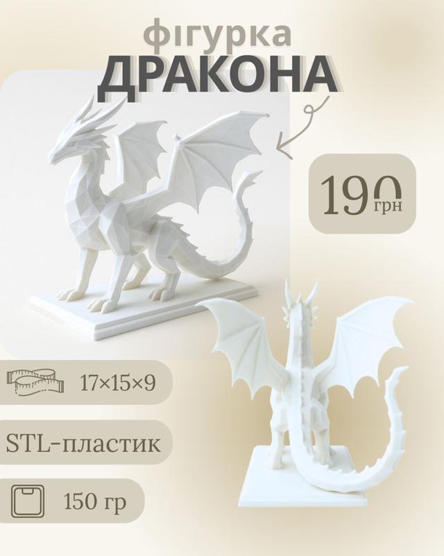 Статуэтка дракон (произведена на 3д принтере, STL пластик): РАЗМЕР: длиж. 17см вис. 15см шир. 9см Легкий в уходе (достаточно помыть под водой)