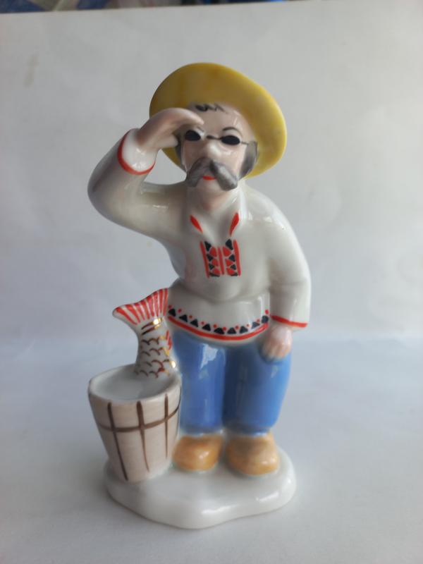 Фарфоровая фигурка "Дед рибак" Все цельное, без сколов