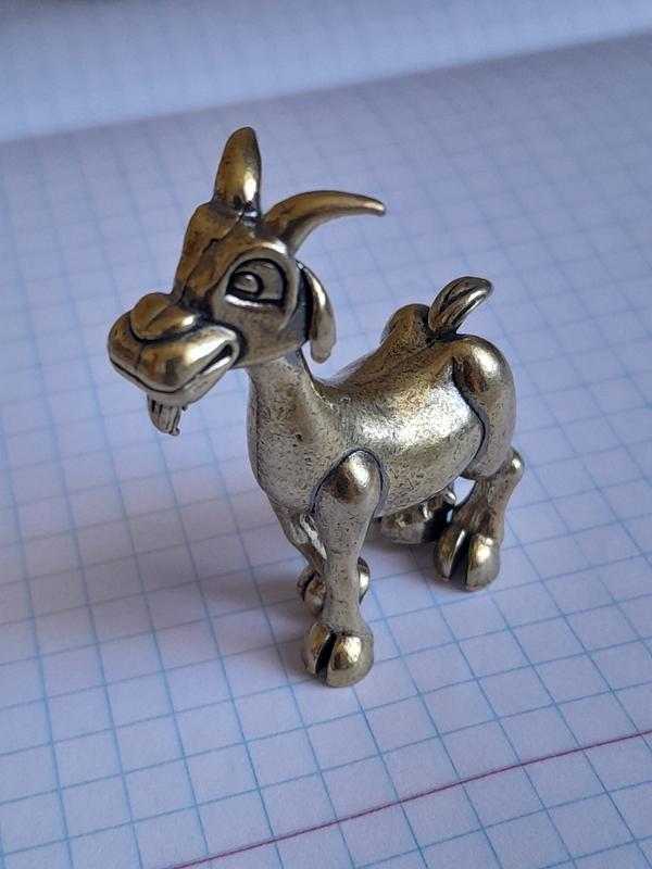 Коза - небольшое художественное изделие, которое поражает своей нежностью и внимательностью к деталям. Вес составляет 40 грамм, длина 37мм и высота 47 мм. Этот шедевр станет замечательным подарком для коллекционеров и любителей миниатюры, перенося вас в волшебный мир и эстетику искусства.