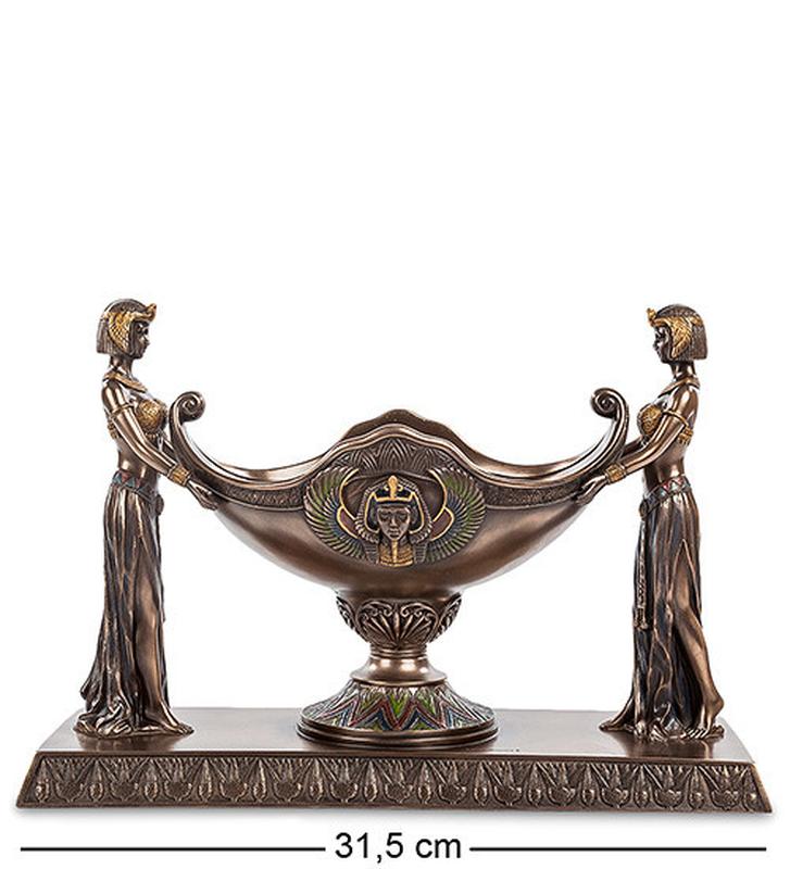 Ваза Veronese Египтянки 31,5 x 11 x 21,5 см 1903791 вес-1,8 кг Производитель: Veronese (Италия) Материал: полистоун покрытый бронзой. Ваза выполнена в виде купели для купания фараона: это подтверждает изображение верховного правителя Древнего Египта на стенке сосуда. По обе стороны от купели расположены стройные, молодые египтянки в одежде, популярной в период правления фараонов: на девушках длинные юбки, бюстгальтеры, вышитые золотыми нитками, и золотые головные уборы, выполненные в форме головы птицы и длинных крыльев. Ваза «Египтянки» - прекрасный подарок на юбилей. Ее также можно подарить деловому партнеру или чиновнику. Ваза будет прекрасно смотреться в богато обставленной комнате, на рояле, на каминной полке или на антикварном журнальном столике.