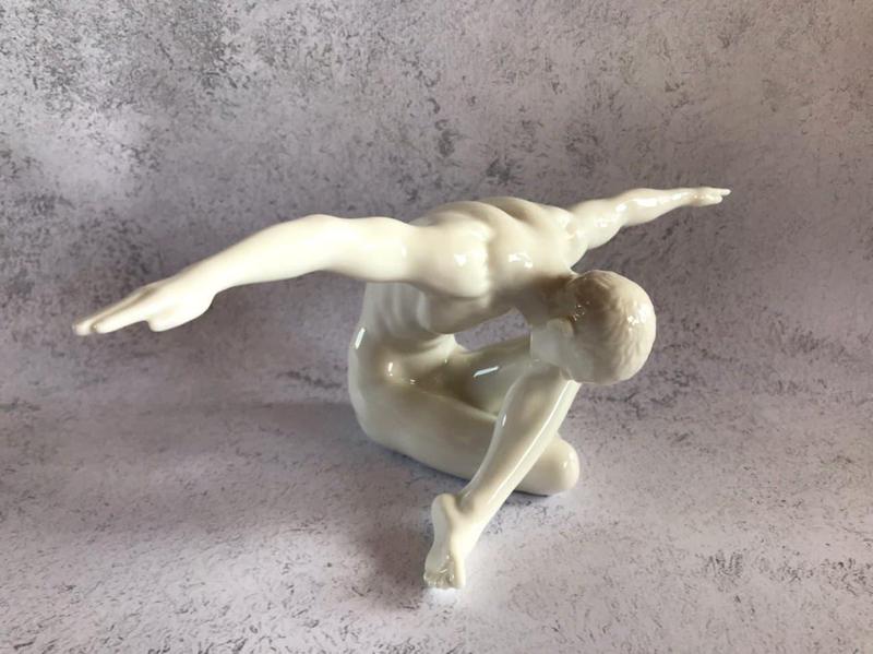 Статуэтка ''Атлет'', высотой 13,5 см. длина 40 см На протяжении многих веков обнаженная натура остается одной из наиболее привлекательных тем в искусстве. Еще древние греки и римляне воспевали в скульптуре красоту обнаженного мужского тела, являющегося воплощением мужественности и силы. Весь мир восхищается древнегреческими статуями атлетов, идеальными пропорциями их тел. На протяжение столетий они украшали фасады и интерьеры дворцов и общественных зданий. Статуэтка "Атлет", выполненная из фарфора, гармонично впишется в интерьер практически любого стиля от классики до хай-тека. Добавит в ваш дом или офис изысканности и стиля. Размеры изделия: 40 x 16 x 13,5 см. Вес: 0,65 кг.