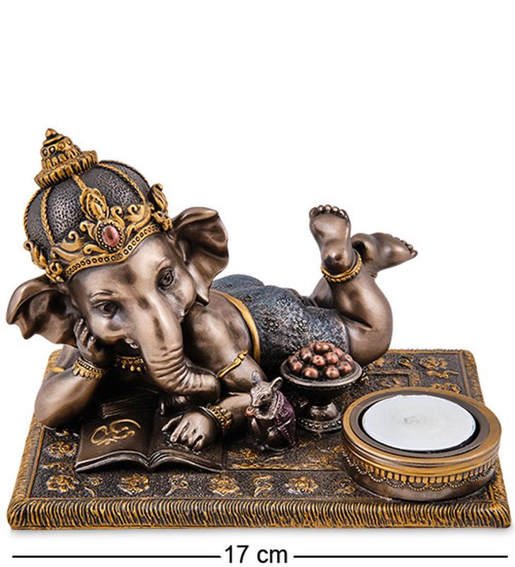 Статуэтка Veronese Ганеш - Бог мудрости и благополучия 17х12 см 1907239 полистоун покрытый бронзой Производитель: Veronese (Италия) Бронзовое покрытие. Размеры изделия Длина: 17 см; Ширина: 12.5 см; Высота: 12 см; Диаметр: 4.5 см; Вес: 0.95 кг. Ганеш - божество с головой слона, бог преуспевания и мудрости. Он убирает все преграды для тех, кто попросит его о помощи. Знакомые с индуизмом наверняка видели на иллюстрациях странное существо – человека с головой слона. Среди сотен богов индуизма Ганеш – единственный «человекослон», и занимает в религии особое место. Если верить индусам, Ганеш мудр, великодушен, и всегда готов проявить сострадание к человеку, попавшему в беду. Если на пути живого существа возникают преграды, обращайтесь к Ганешу: он обязательно поможет.