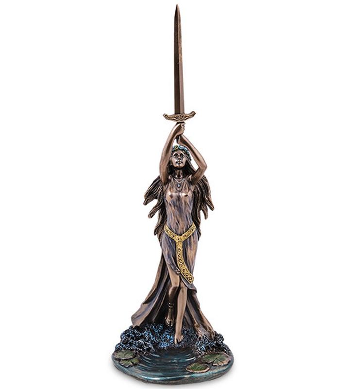 Статуэтка Veronese Владычица озера - хозяйка меча Экскалибура 33х11 см 1907189 бронзовое покрытие полистоуна Размеры изделия Длина: 11 см; Ширина: 10.5 см; Высота: 33 см; Вес: 0.41 кг. Статуэтка изготовлена из полистоуна (искусственного камня) и покрыта бронзовым напылением. Упакована в красивую подарочную коробку. Поэтому, покупая эту статуэтку, Вы получаете ценный и красивый подарок, который не требует дополнения. Благодаря надежной внутренней упаковке, изготовленной из пенопласта с углублениями для мельчайших деталей, Вы можете быть уверены в безопасности при транспортировке.