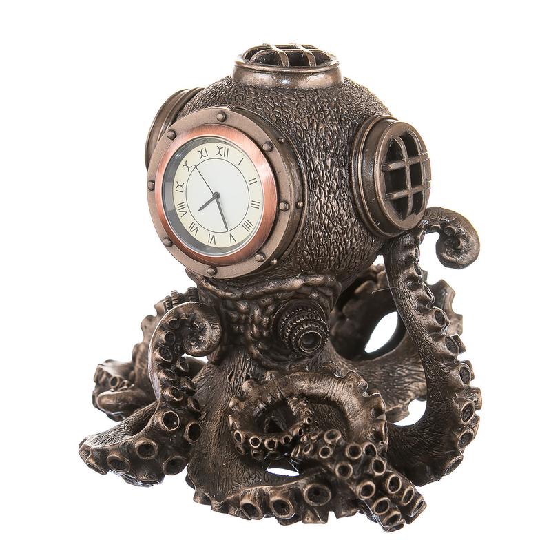 Часы настольные Veronese Осьминог 14 см 76760 Высота 14 см. Производитель: Veronese (Италия) Материал: полистоун покрытый бронзой Часы "Осьминог" выполнены в стиле симпатик от известного бренда Veronese, станет оригинальным акцентом в интерьере и задаст неповторимую атмосферу. Осьминог - моллюск, который символизирует долголетие, возрождение и вечную жизнь. Все потому, что у него три сердца и он может наращивать раненые или утраченные конечности. Часы изготовлены из полистоуна (искусственного камня) и покрыты бронзовым напылением. Запакованы в пенопласт и красивую подарочную упаковку.
