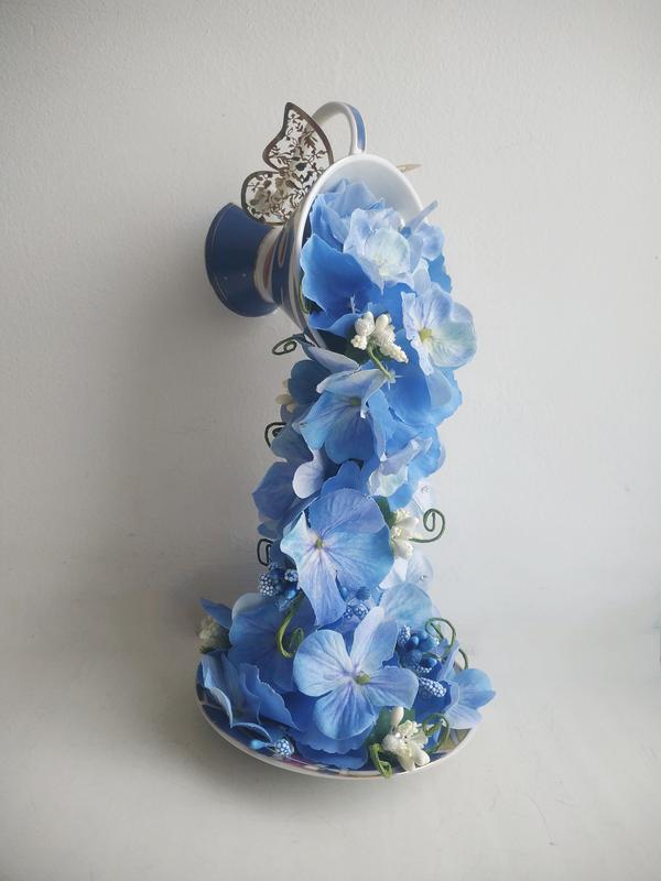 Парьчая чашка сувенир декор интерьера статуэтка летающая чашка водопад цветов букет голубо...