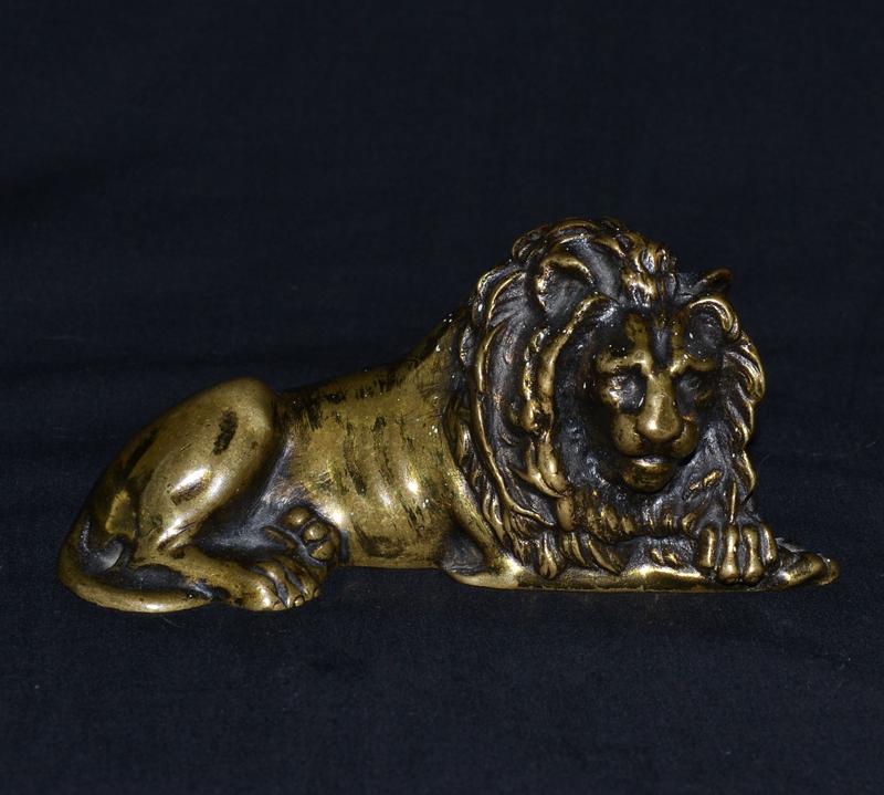 Бронзовый лежащий лев.