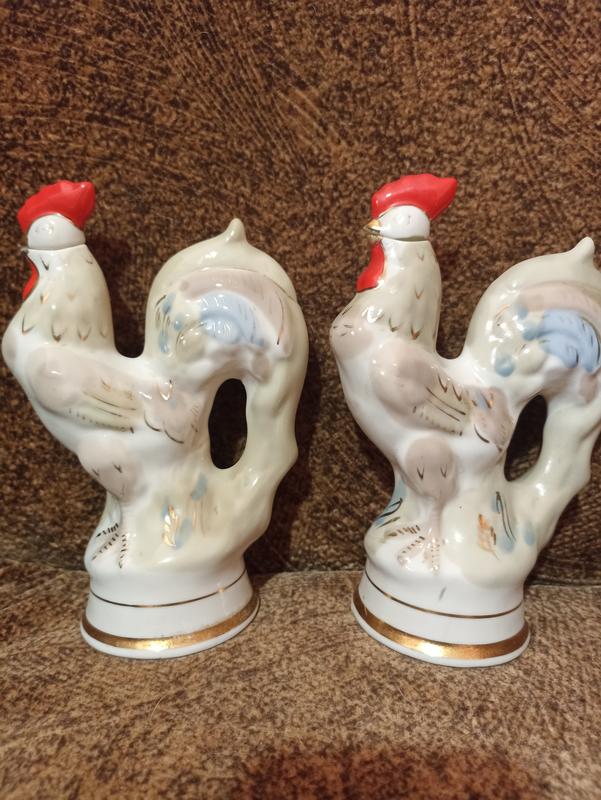 Статуэтка петух 2шт винтаж времён СССР,открываеться клюв.,на одном на донышке закрашено на фото видно ,цена за два петуха.