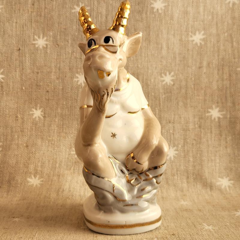 Статуэтка Козел на унитазе, телефонный разговор, фарфор. (т2) Хорошее состояние, ручная работа