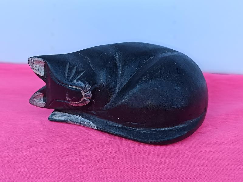 Кот котик винтажный деревянный фигурка статуэтка спящего кота ручная резьба из цельного де...