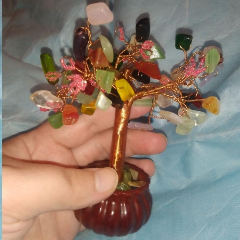 Дерево у фэншуй символизирует связь с корнями, соблюдение традиций, практичность, благополучие хозяев дома, желание дарить и принимать подарки, проявлять щедрость, так что стихия повлияет и на душевное состояние. Характеристики: - настольная статуэтка - керамика, камушки натуральные, ценные. - высота 15 см