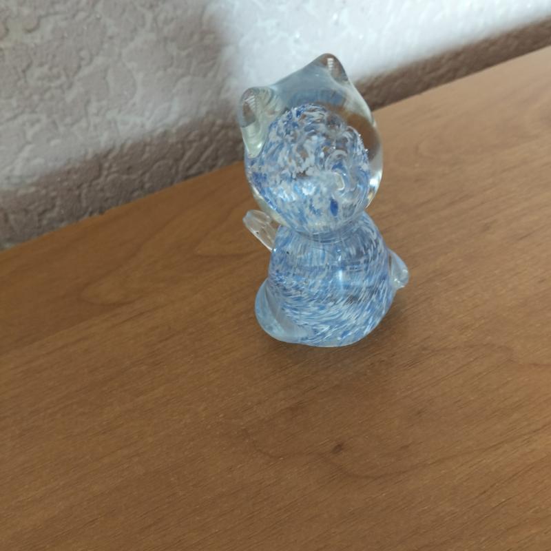 Статуетка кішечки, скло, вінтаж. Колекційна річ. В гарному стані. скляна фігурка кота, відома як "Kitten on Pillow" ("Кошеня на подушці"), виробництва Boyd Crystal Art Glass. Особливості: Компанія-виробник: Boyd Crystal Art Glass, яка працювала в місті Кембридж, Огайо, США з 1978 по 2014 рік. Компанія спеціалізувалася на невеликих колекційних фігурках із пресованого скла. Назва фігурки: "Kitten on Pillow". Пізніші моделі називалися "Miss Cotton the Kitten". Колір: Ця фігурка має колір "Willow Blue Slag" (вербово-блакитний шлак). Компанія Boyd була відома тим, що додавала шматочки різнокольорового скла до розплавленого скла, що робило кожну фігурку унікальною. Оплата на карту продавця. Уважно дивіться фото та опис магазину. Підпишись і будь в курсі всіх поповнень в моєму магазині.