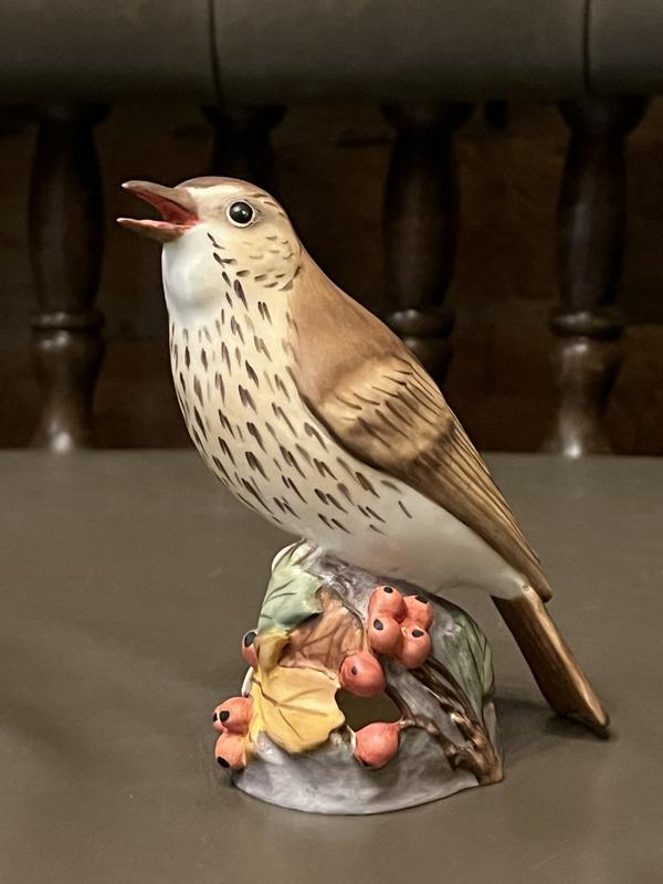 Фигурка “Дрезд” (Thrush) Bone China | Royal Worcester, Англия | 1950–1970-ти Изысканная фарфоровая фигурка дрозда - одной из самых известных моделей легендарной английской фабрики Royal Worcester. Создана из тонкого bone china (костяного фарфора) с изящной ручной росписью. Характеристики: • Высота: 11,0 см • Длина: 9,5 см • Материал: bone china (костящий фарфор) • Клеймо: ROYAL WORCESTER®, THRUSH, Made in England, номер 3234 • Авторская подпись: RMC (на ручной покраске) • Происхождение: Royal Worcester, Англия • Состояние: отличное, без сколов или трещин Ценность: Оригинальная британская фарфоровая фигурка середины ХХ ст., ручной росписи. Фабрика Royal Worcester - одна из старейших в мире (с 1751 г.), ее коллекционные птички ценятся среди антикваров и коллекционеров за высокое качество исполнения и реалистичность.