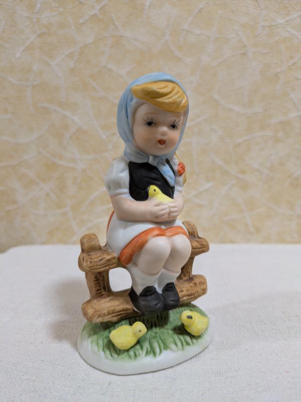 Статуэтка фарфоровая бисквит девочка с цыпленками винтажная