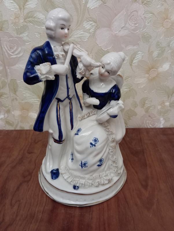 Винтажная парцелленовая статуэтка пара музыкантов. Присутствующие изящные детали,таки как сетевые элементы на манжетах и платья. Привезена из Германии. Высота 22см Ширина 13см Ответим на все вопросы