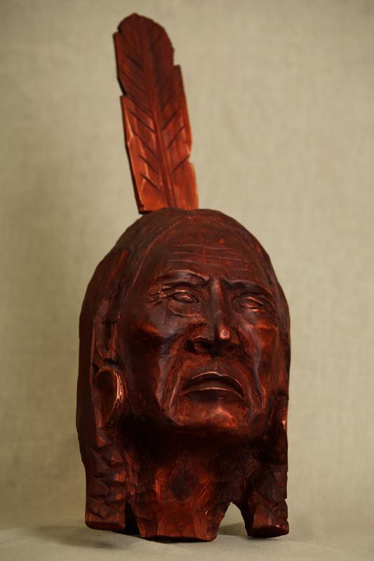 Высота-34 см Ширина-22 см Глубина-15 см Скульптура ручной работы, авторская резьба по дереву-липа(тонирована). Скульптура подвешивается на стену. Сидящий Бык -- вождь индейского племени хункпапа, возглавлявший сопротивление коренного населения вооружённым силам США. Отличное дополнение в коллекцию статуэток.