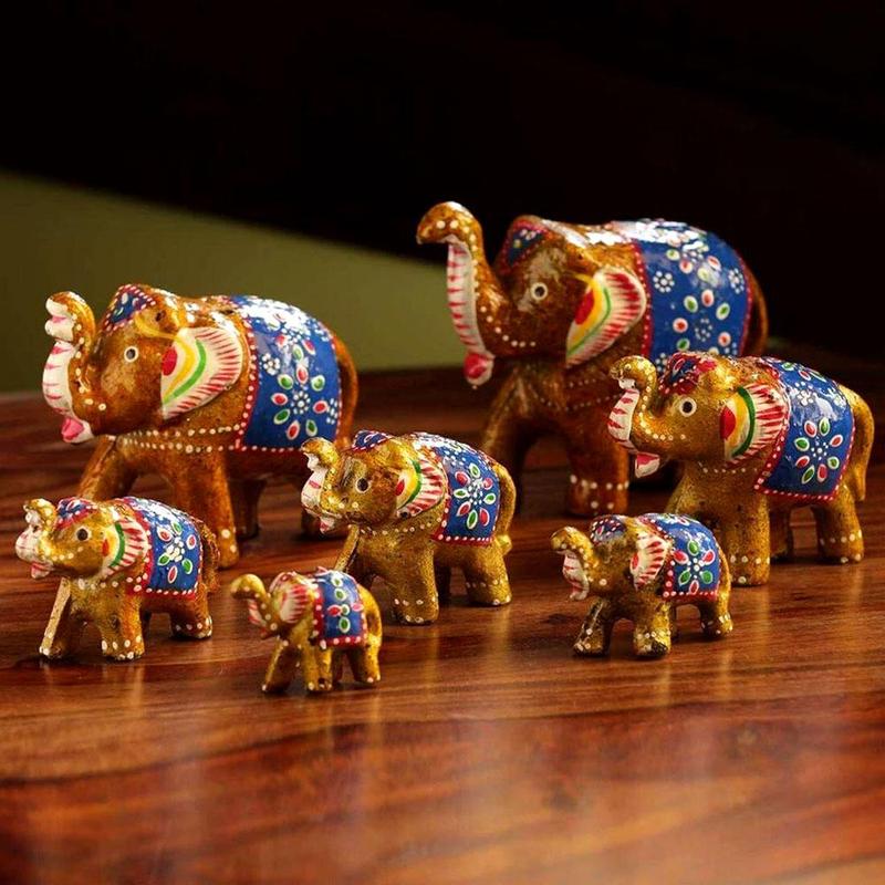 Классический индийский талисман удачи и богатства - 7 слонов с поднятым вверх хоботом. Приносят в дом процветание, семейное счастье и защиту. - Материал: полистоун - Покрытие: ручная роспись - Каждый слон с поднятым хоботом -- символ привлечения удачи - Размеры слонов: самый большой -- 9 см, самый маленький -- 4 см Энергетика и значение по Васту/Фэн-шуй Семь слонов символизируют 7 сокровищ жизни: - здоровье - любовь - богатство - мудрость - успех - долголетие - крепкую семью Рекомендуемое размещение: - на полке или комоде в гостиной - в зоне богатства (юго-восток) - парадным «шествием» по направлению внутрь дома -- чтобы удача «заходила» в дом Идеальный подарок на новоселье, свадьбу, день рождения, повышение или просто как мощный талисман благополучия.