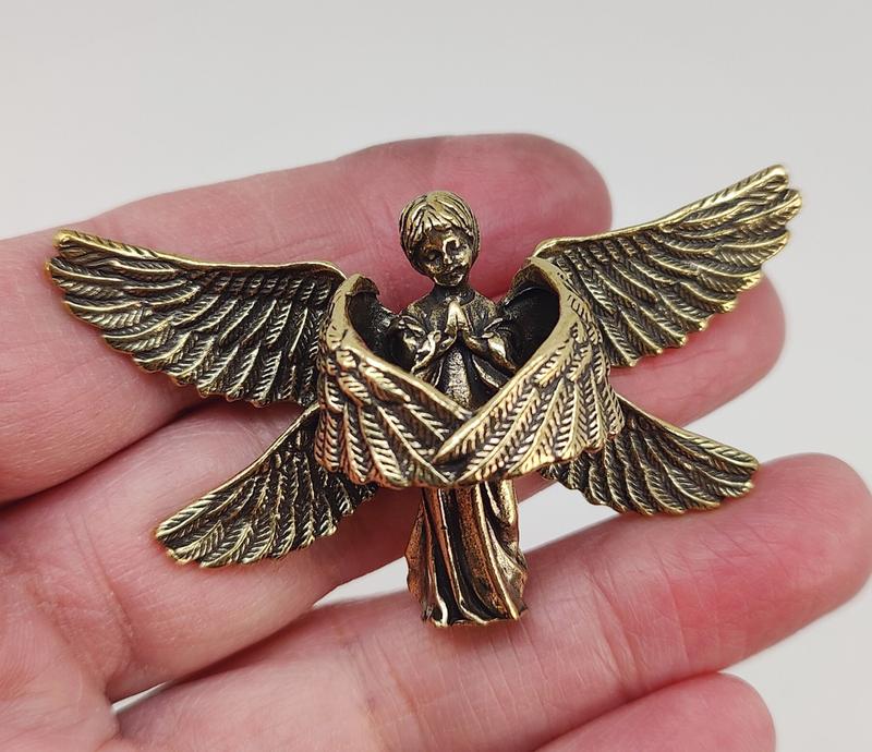 Фигурка из латуни "Шестикрылый Серафим". Хорошая детализация, размеры: высота 3,70 см., ширина 6,50 см., глубина 2,00 см., вес 37.70 грм., символизирует чистоту и близость к Богу.