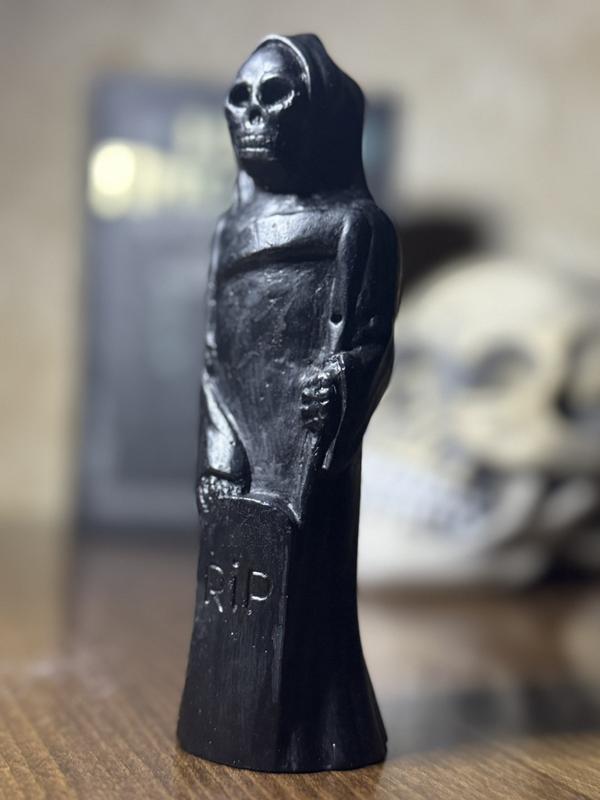 Опис: Ця унікальна статуетка Смерть — не просто декор, а витвір, створений вручну з увагою до деталей. Кожна модель — індивідуальна, без масового штампування, що робить її справжнім ексклюзивом. Ідеально для декору на Геловін, тематичних закладів для ворожби тощо. "Смерть" стане яскравим акцентом у будь-якому просторі — від сучасного лофту до арт-студії. Ідеально підходить для тих, хто цінує оригінальні речі, створені з душею, а не серійно на заводі. Такої другої не знайдеш — кожна статуетка має свої мікроособливості поверхні, відтінку та фактури. Характеристики: Матеріал: високоякісний гіпс Колір: чорний Розмір: 14х4 см Вага: 130 гр. Тип виготовлення: ручна робота Ідеально для: Декору кімнати, офісу, студії Подарунка для прихильників рок/метал культури Тематичних фотозйомок Хелловіну або тематичних вечірок