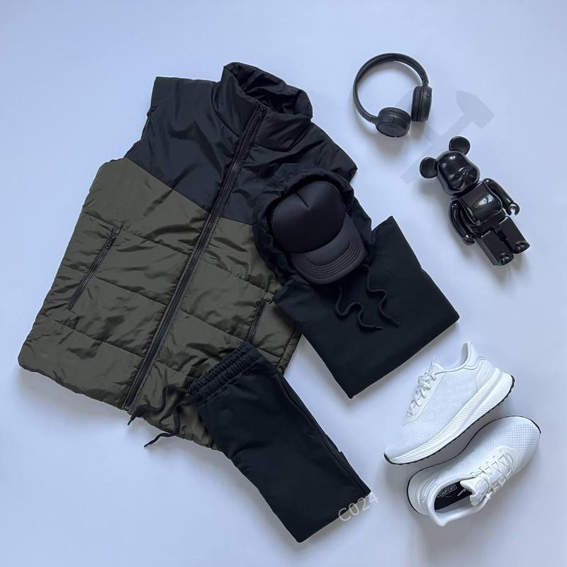Материал жилетки : Водоотталкивающая плащевка Наполнитель : Холлофайбер 100, очень плотная (НЕ ТОНКА) Размерный ряд: S, M, L, XL Дополнительная информация : Имеет два внешних кармана на молнии и один внутренний карман. Качественная фурнитура! Материал костюма : ▫️Сезон : Весна ▫️Материал : Хлопок 90 %, эластан 10% ▫️Размерный ряд: Xs, S, M, L, Xl, Xxl