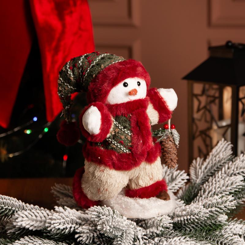 Текстильная фигурка снеговика размером 19×17×40 см станет стильным акцентом вашего зимнего декора. Она выполнена в традиционной праздничной цветовой гамме и создает атмосферу тепла и уюта. Благодаря компактным размерам и устойчивой основе, фигурку можно разместить на полу, комоде, под елкой или в витрине -- она гармонично впишется в любое пространство. Снеговик выполнен из мягкого, приятного на ощупь текстиля с выраженной фактурой. Теплые тона и доброжелательное выражение лица придают изделию праздничное настроение. Основные характеристики новогодней фигурки Снеговика: Материал: текстиль; Размер: 19×17×40 см. Фигурка станет отличным элементом новогоднего оформления дома, офиса, витрины магазина или детской комнаты, добавляя интерьеру уют и праздничное настроение.