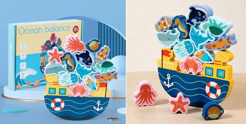 Уникальная развивающая игрушка для детей Деревянный балансир C 75593 выполнен в виде корабля с яркими морскими животными, которые помогают детям развивать координацию, внимательность и моторику. Ребенок должен аккуратно размещать фигурки на основе, чтобы сохранить равновесие и не допустить падения конструкции. Особенности: - Основа-балансир из натурального дерева в форме корабля; - Разноцветные деревянные фигурки морских животных разной формы и веса; - Развивает пространственное мышление и навыки баланса; - Изготовлено из прочного и безопасного для детей материала; - Идеально подходит для увлекательных игр и обучения.