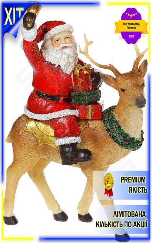 Dm декоративная статуэтка санта спецификация 2.2 на олене полистоун 22.5 см для зимнего де...