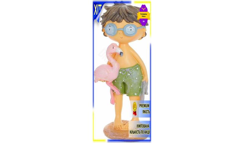 Dm декоративная статуэтка мальчик спецификация 2.2 с фламинго полистоун 18 см для интерьер...